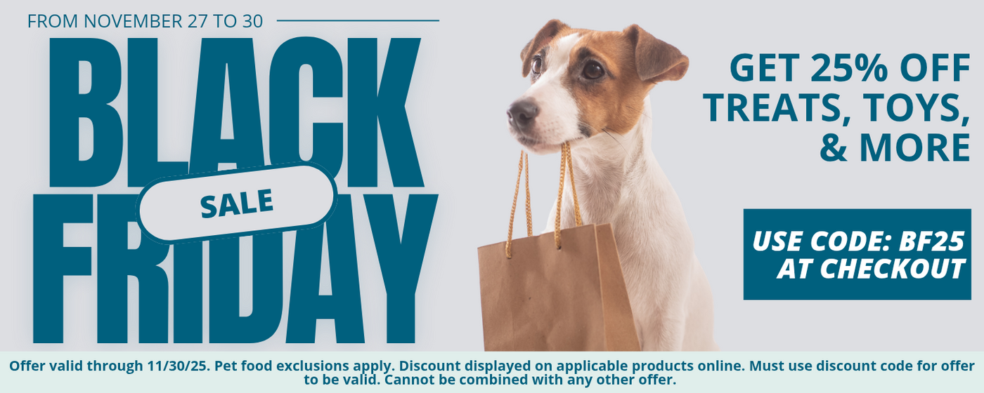 Early Bird Bonus! FREE $15 eGift Card when you spend $99 or more on treats and toys by 11am Nov 28th!