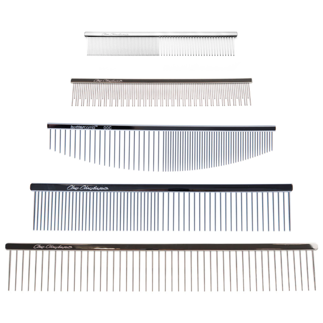 Maintain your pet's coat with the Chris Christensen Greyhound-Style Buttercomb, the grooming essential that delivers professional results at home. This expertly designed combination comb glides effortlessly through fur, eliminating tangles and mats while preventing painful snagging and breakage. Ideal for daily maintenance on dogs and cats of all breeds, it keeps coats looking lustrous and healthy between professional grooming sessions. Whether you're preparing for show day or simply keeping your companion looking their best, this versatile tool makes grooming time easier and more enjoyable for both you and your pet.