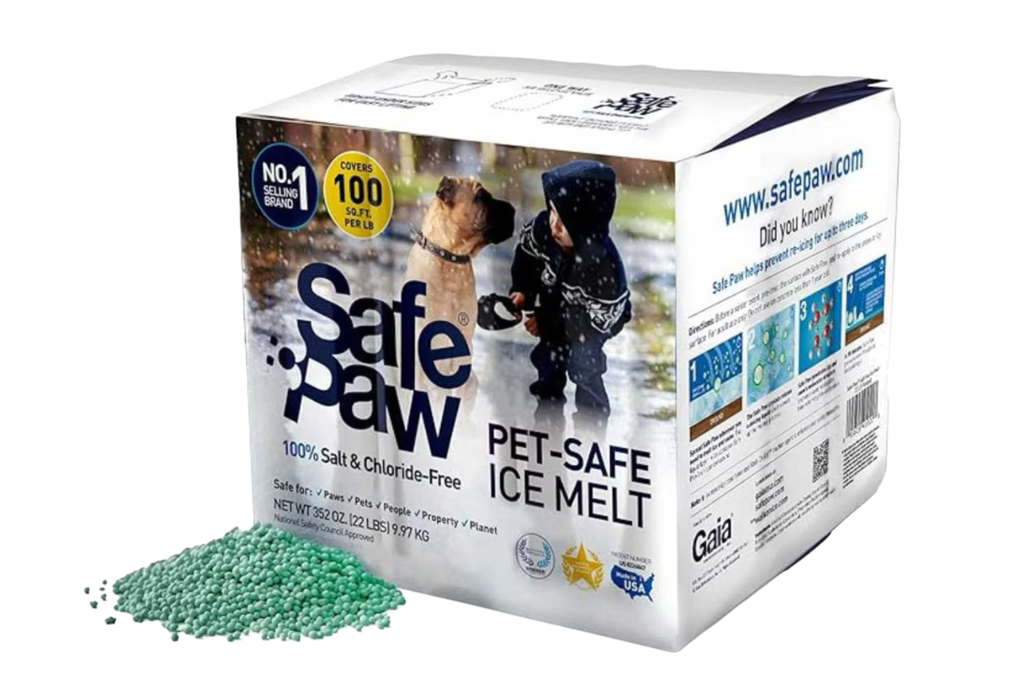 It won’t harm animals or children, and it won’t damage your concrete, trex-deck, pavers & roofs. That’s Safe Paw. Unlike anything else on the market, Safe Paw can change how winter affects our planet. Just spread Safe Paw wherever you need to melt ice and snow!