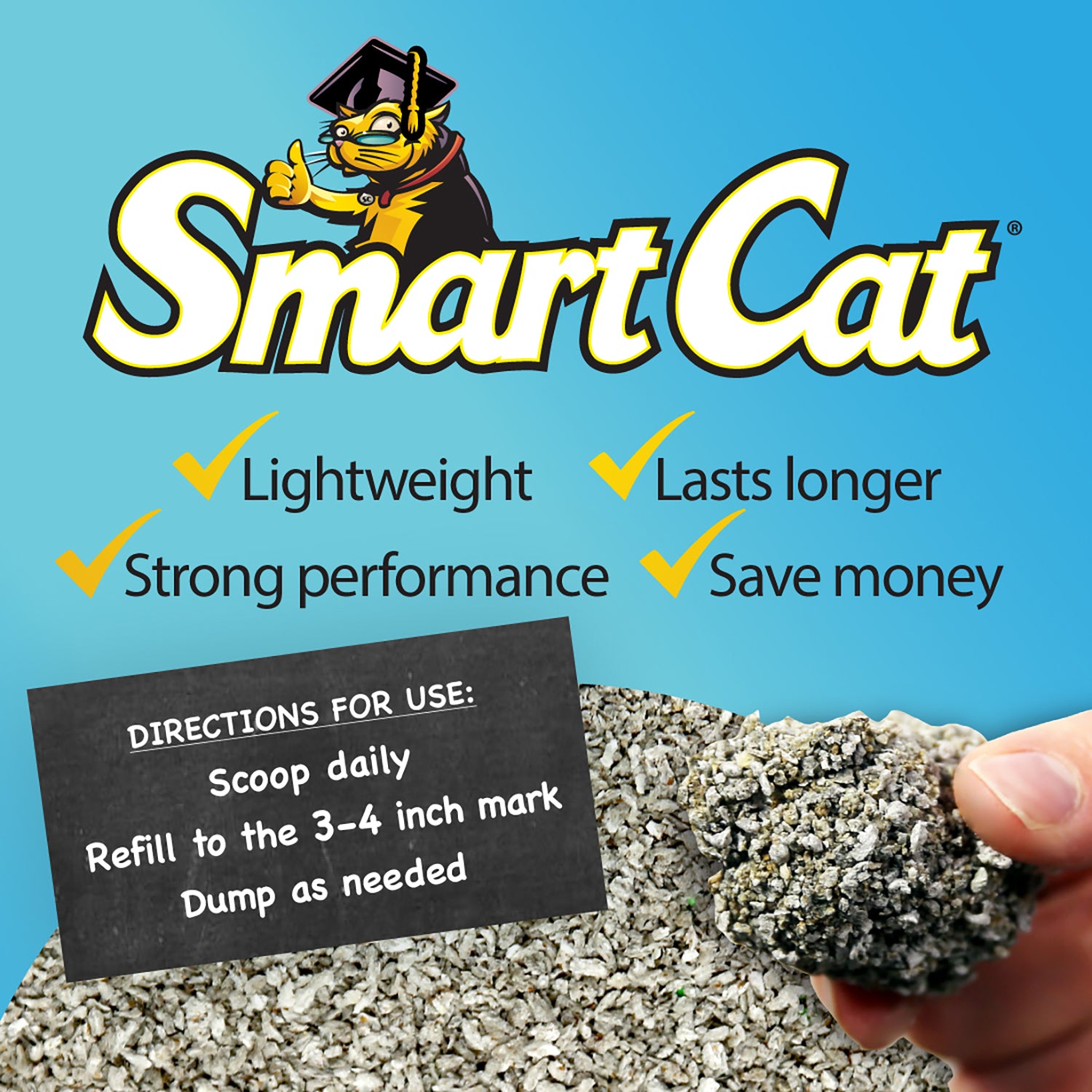Discover the simplicity of SmartCat Lightweight Clumping Litter—engineered to be half the weight of traditional clay while delivering unbeatable clumping power. Made from 100% USA-farmed grass, this natural formula clumps instantly on contact to trap odors before they start. At 99% dust-free and soft on paws, it's ideal for multi-cat households. Chemical-free, fragrance-free, and completely biodegradable, SmartCat combines convenience with sustainability. Easy to carry, easy to scoop, easy to love—your cat will thank you.