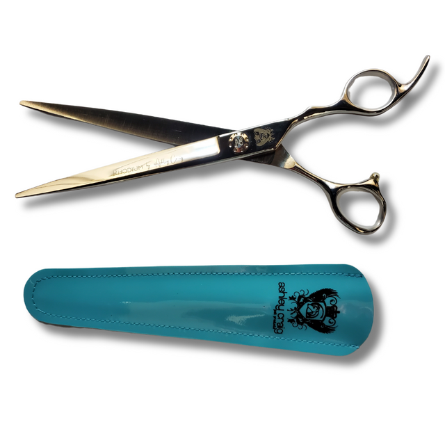 Ashley Craig Oynx Rhodium Series Grooming Shears For Dogs, 8" Straight