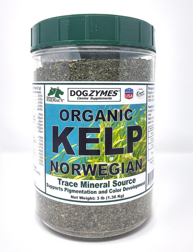 Dogzymes Organic Norwegian Kelp is a valuable nutrition source. Providing trace minerals found only on the ocean floor, kelp brings what our farm soil no longer delivers. Kelp is rich in iodine which helps support gland function, especially the thyroid. Like people, hypothyroid is seen in many dogs today. Iodine is increasingly deficient in food. Kelp is an easy way to restore this necessary part of diets. Environmentally sustainable, our kelp grows in the cleanest cold ocean water anywhere.