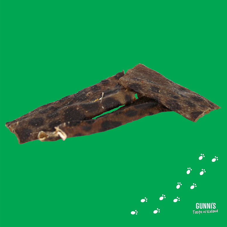 Gunni's Wolffish Skin Chips are a single ingredient chew made from 100% wolffish skin sourced from the waters of Iceland These tasty, High digestibility treats help promote healthy teeth and gums. Wolffish skins deliver a protein-rich chewing experience dogs absolutely love!