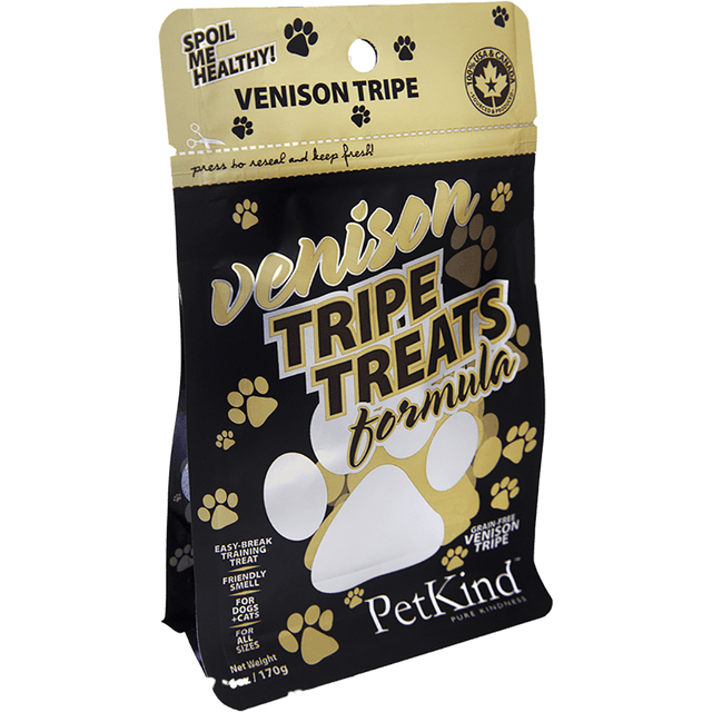 Even the pickiest eaters crave PetKind Grain-Free Green Venison Tripe Dog and Cat Treats. Boasting nutrient-rich green tripe, these tasty treats feature a fun, easy-to-break design that is perfect for training. Great for dogs and cats of all sizes.