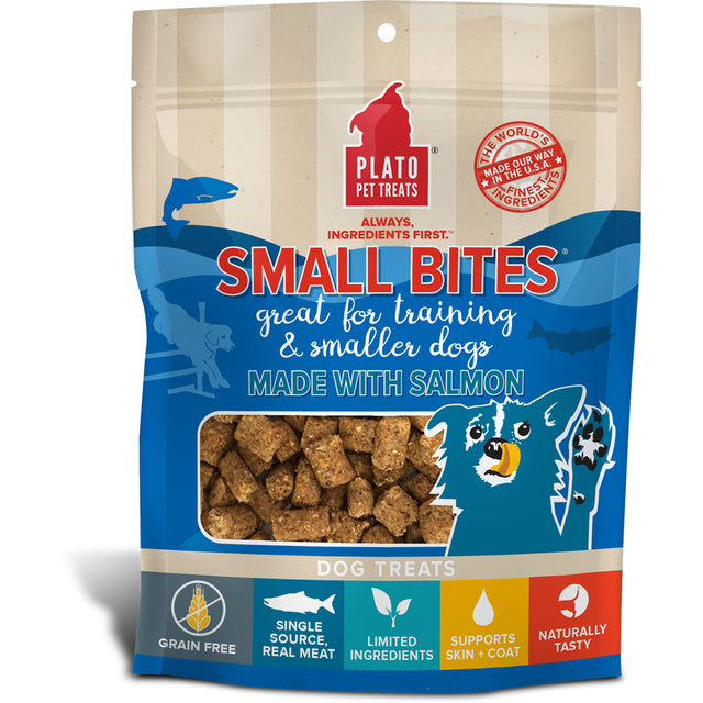 Fresh from the farm, Plato’s Small Bites Salmon Dog Treats are made with slow-roasted salmon and a mixture of healthy fruits and vegetables. These low-calorie, high-protein treats are designed for smaller dogs and the perfect size for training or offering multiple rewards.