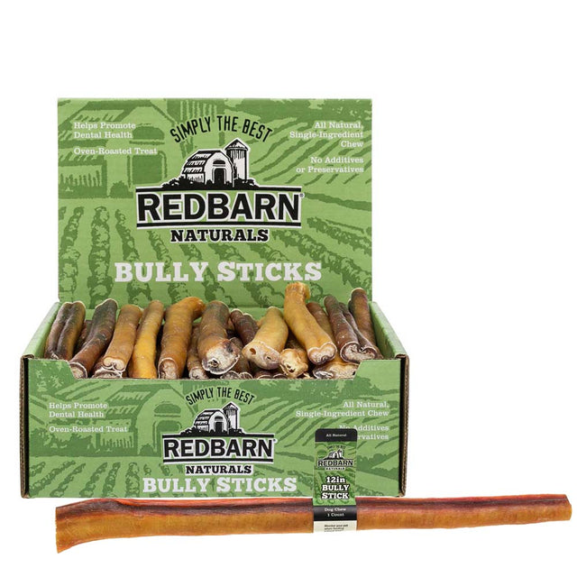 Redbarn Bully Sticks support muscle development and promote strong dental health by massaging the gums and removing plaque and tartar buildup.