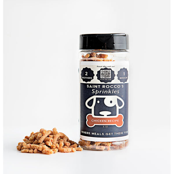 Have you ever wanted to give your pup fresh snacks but just never seem to have the time to make them? Look no further as you have found the ultimate treat. Saint Rocco's sprinkles give the aroma that will have your pup begging for more. Made with 100% Human Grade ingredients and baked fresh, in small batches right here in PA.
