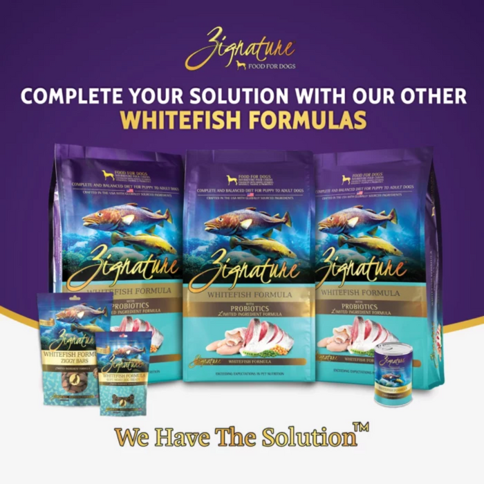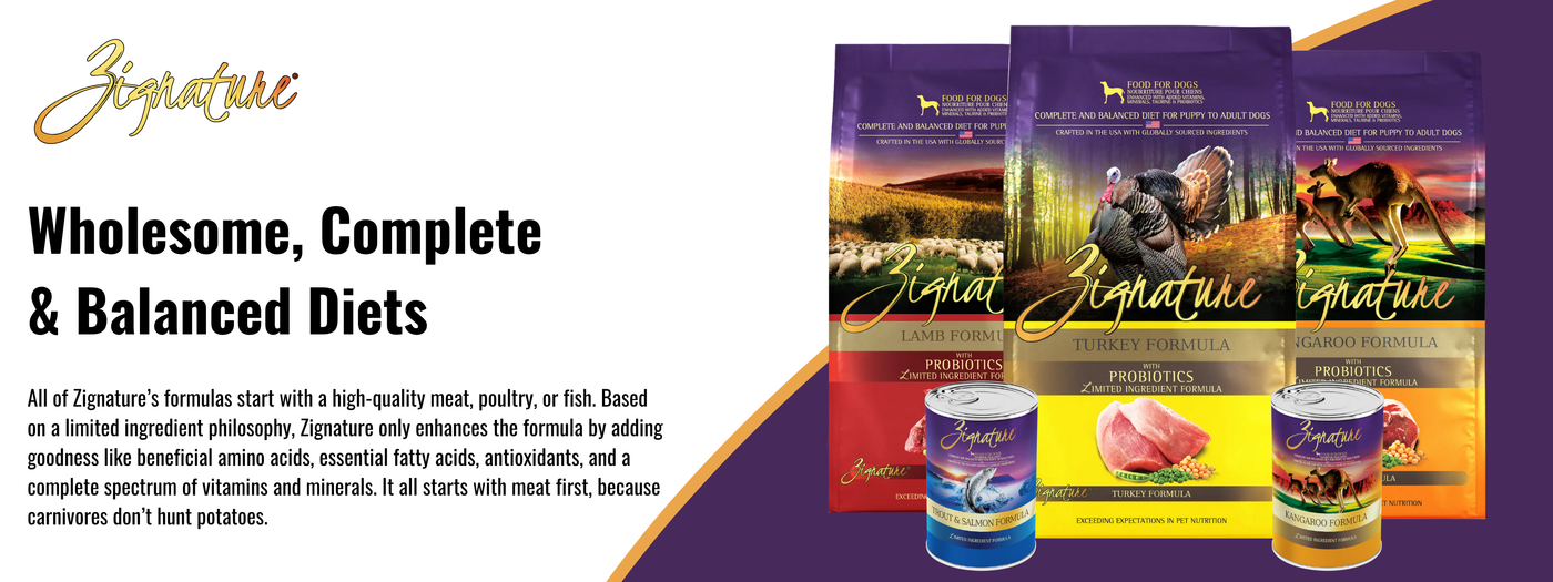 Zignature Salmon Formula Dog Food is free from potatoes, grain, chicken, eggs, gluten, tapioca, corn, and soy, making it a great option for dogs with food sensitivities. It's also formulated to meet the nutritional levels established by the Association of American Feed Control Officials (AAFCO) Dog Food Nutrient Profiles for all life stages, including the growth of large size dogs.